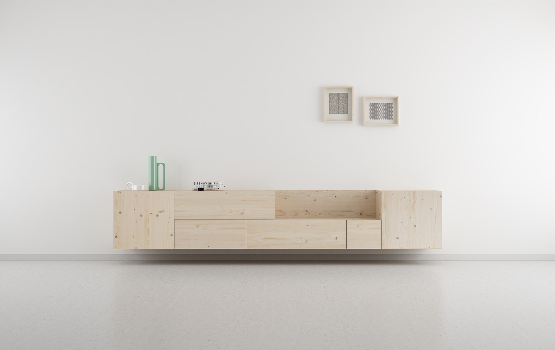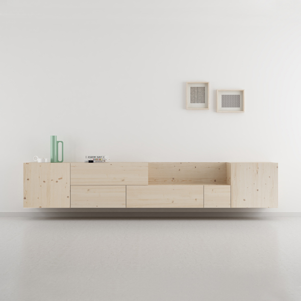Su diseño de este mueble salón a pared o con patas permite una fácil limpieza de la estancia. La altura de sus patas permiten el paso del robot aspirador. Aparato muy presente hoy en día en todos los hogares. Es un mueble con un diseño atemporal no sujeto al paso de las modas. El tirador del cajón es uñero porque nos gusta esa fusión con el mueble. Puedes completar el resto del salón con la amplia colección SUOMI . La madera con nudos le da mucha personalidad al mueble y al mismo tiempo transmite sensación de bienestar. Aún así también tenemos la opción de fabricarlo en madera sin nudos. Si le interesa más información sobre esta opción puede consultar.